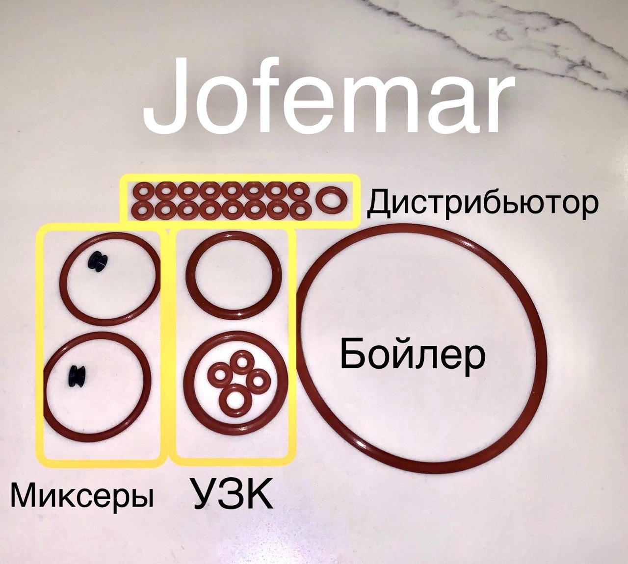Комплект прокладок и сальников для проведения полного технического обслуживания кофейного аппарата Jofemar G23(G25). Применяется пищевой термостойкий силикон. Продолжительный опыт использования.