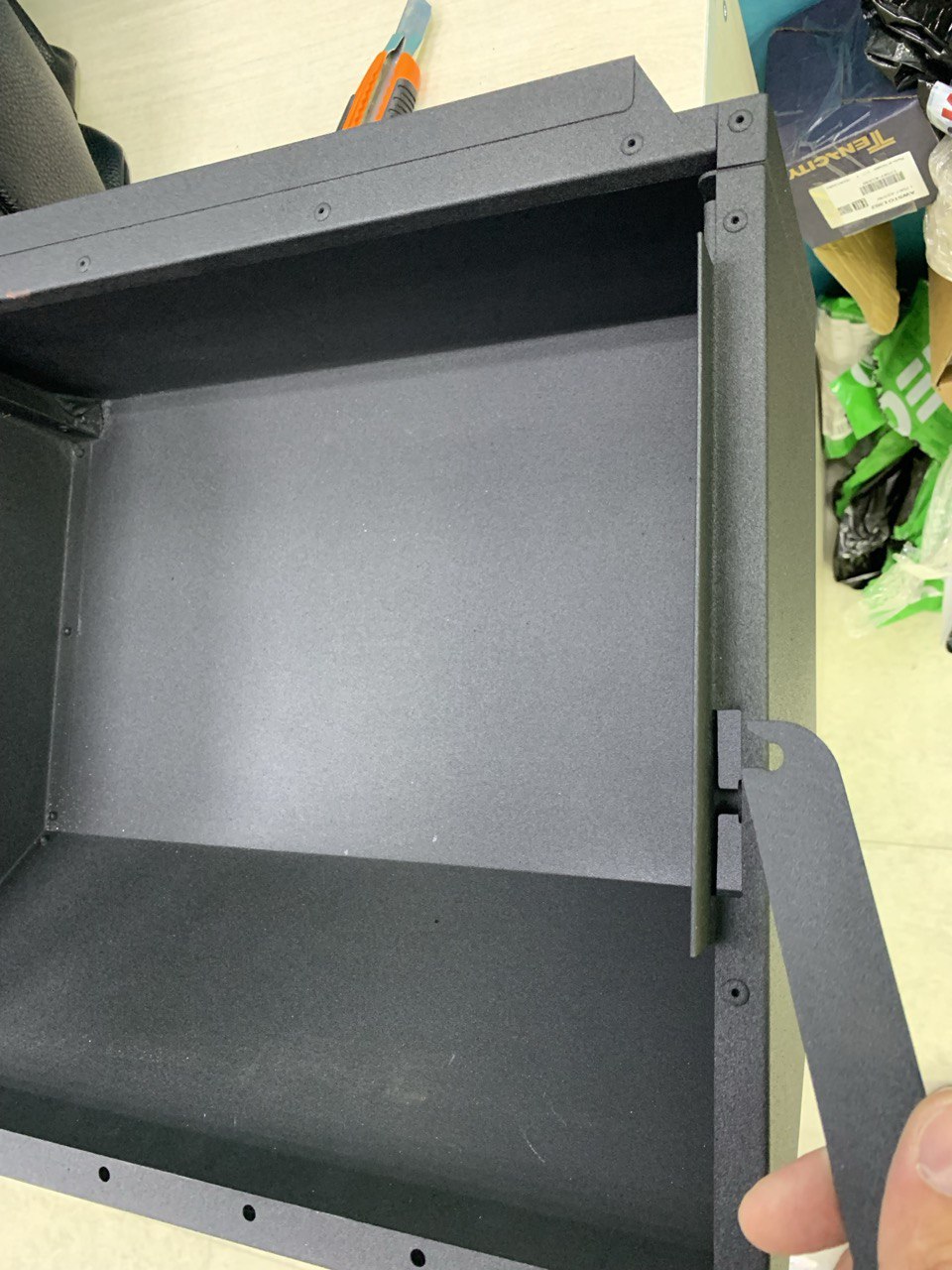 Предварительно необходимо демонтировать оригинальную крышку путем высверливания 6 клепок сверлом, поставляемым в комплекте. Желательно использовать пылесос, для предотвращения попадания алюминиевой стружки внутрь корпуса аппарата.